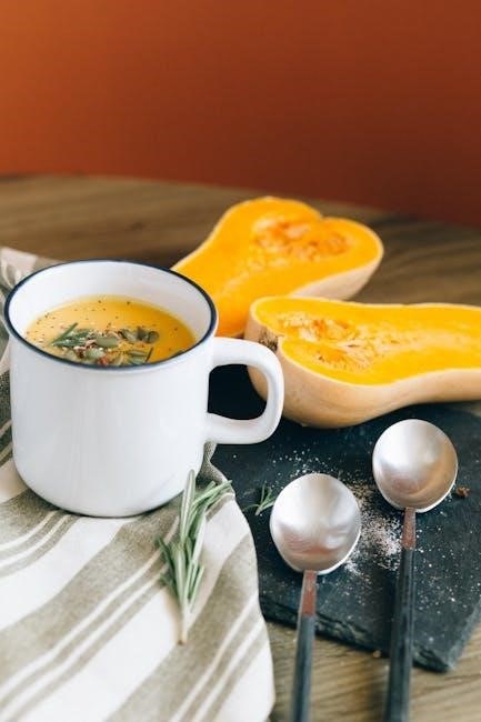 The Ninja Soup Maker stands out for its versatility and advanced features, making it a top choice for creating delicious soups. With its multiple cooking functions and preset settings, it simplifies the process of preparing hearty meals. Users can easily craft creamy soups, broths, and even sauces with minimal effort. The Mealio Soup Maker recipes PDF free download includes a variety of Ninja-specific recipes, such as creamy tomato soup, butternut squash soup, and spicy black bean soup. These recipes are designed to maximize the Ninja Soup Maker’s capabilities, ensuring flavorful and nutritious results. By following these guides, home cooks can unlock the full potential of their Ninja model and enjoy perfectly cooked soups every time.